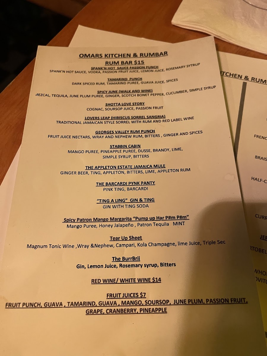 Omar's Kitchen and Rum Bar Menu (2025 Update)