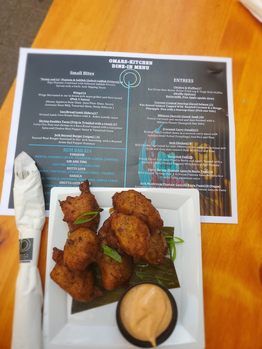 Welcome to Omar's Kitchen and Rum Bar, a delightful culinary oasis nestled in the heart of New York City. This enchanting restaurant transports diners straight to the tropics with its vibrant atmosphere and aromatic dishes. The menu showcases a harmonious blend of Caribbean flavors, featuring standouts like Jerk Chicken and Waffles, presented with a level of spice that tantalizes without overwhelming. Experience the Honey Appleton Wings, drizzled with a rich rum glaze, or dive into unique offerings like the Shrimp Doubles Taco, marrying traditional flavors with a twist.